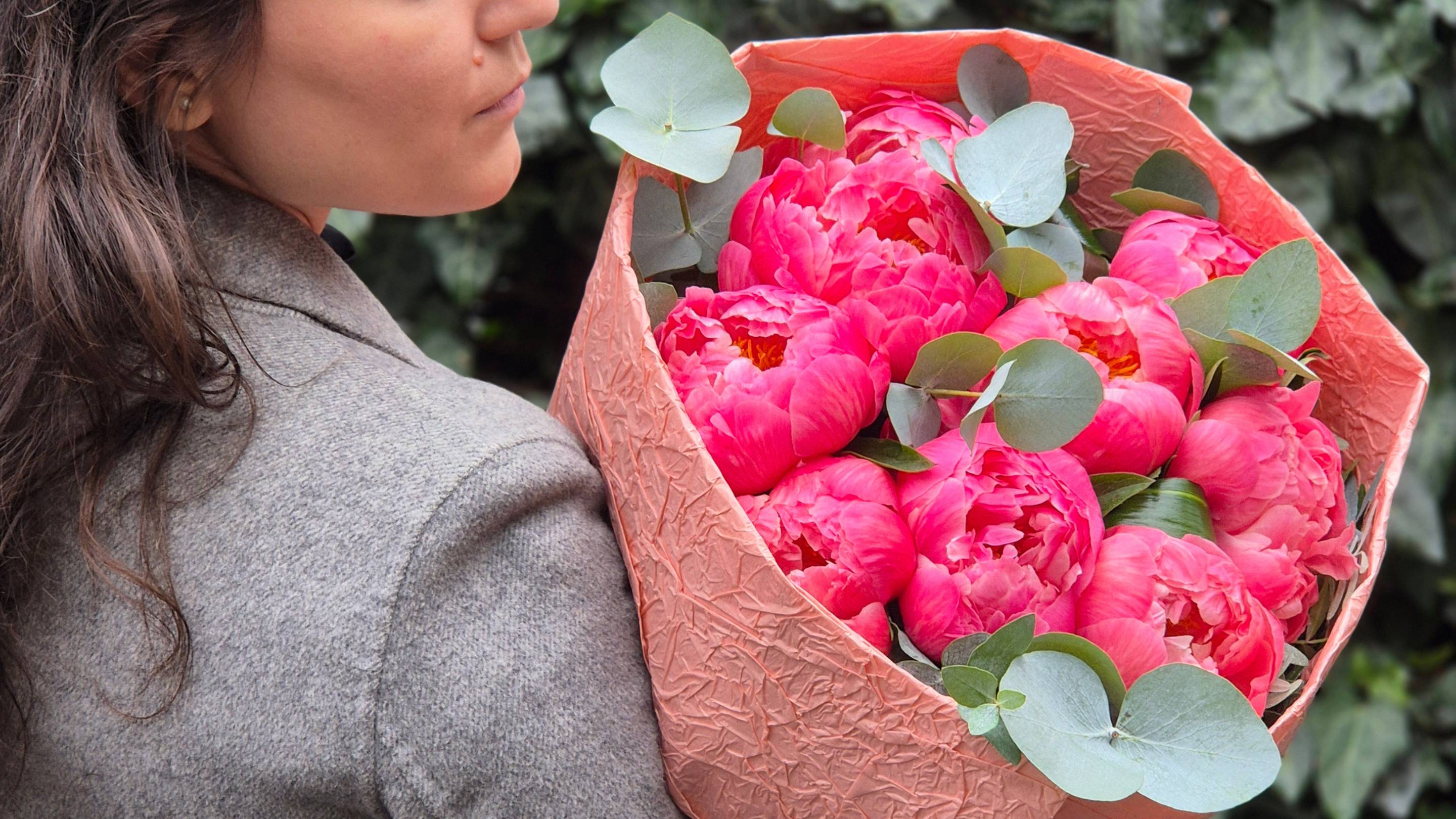 Buchet de Flori cu 9 Bujori Coral