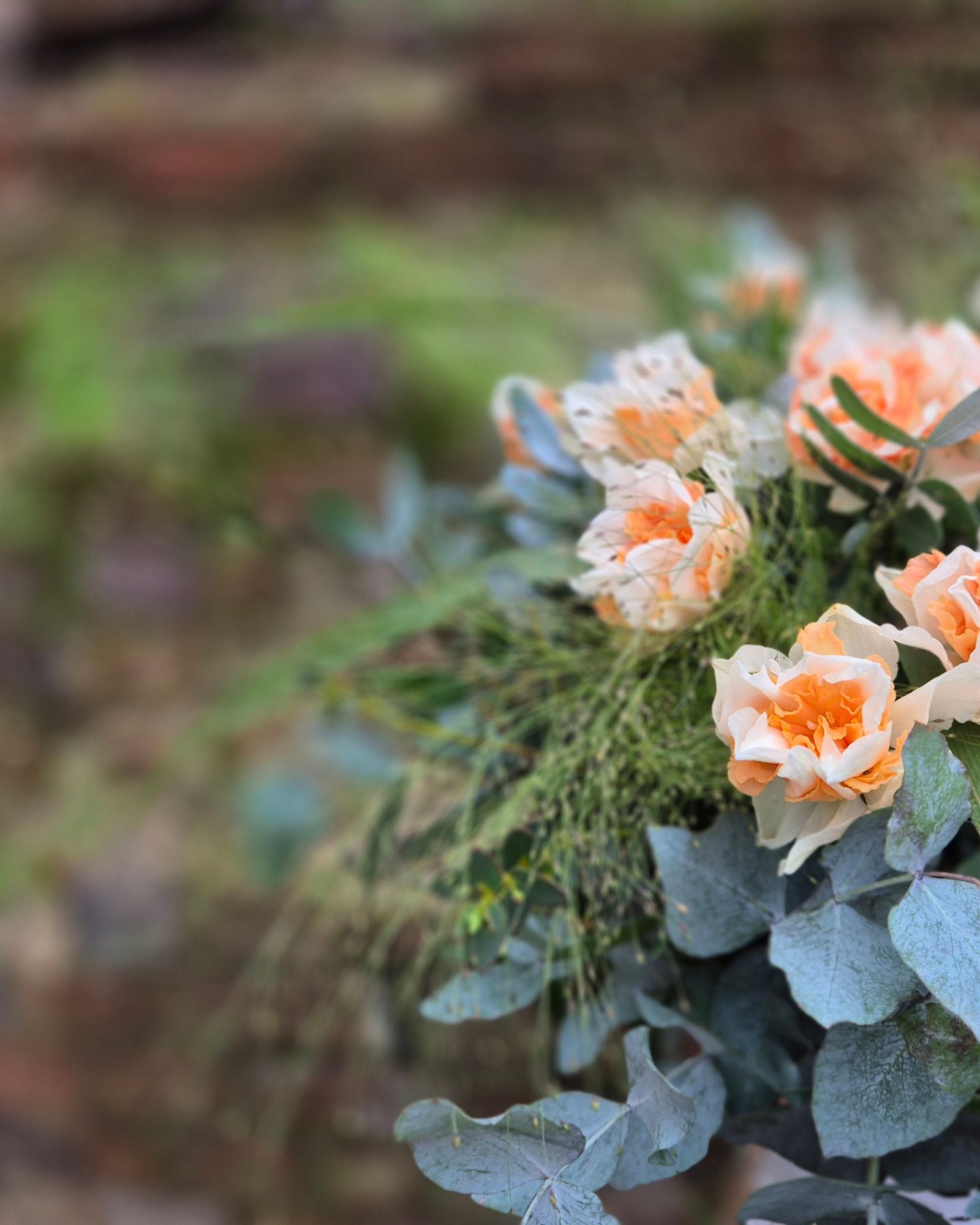 Buchet de Flori 11 Trandafiri Ciclam si Eucalipt
