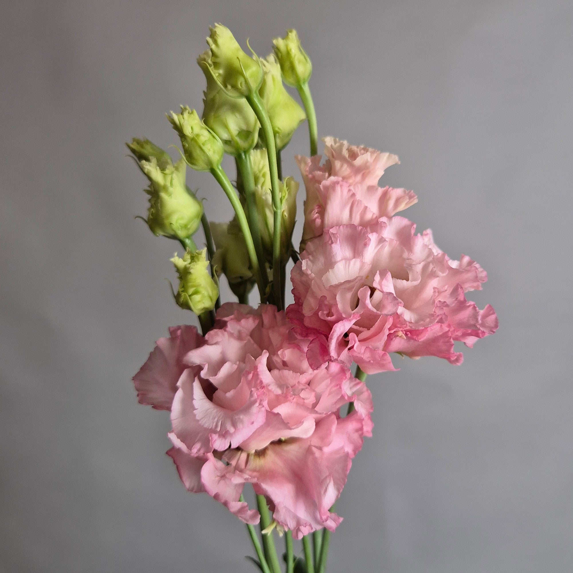 Piesa de rezistenta este hortensia roz pudrat, care ofera volum si o textura bogata, completata perfect de eleganta exotica a orhideei Cymbidium. Trandafirii (si florile de lisianthus) in nuante de roz pal si crem adauga o nota clasica de feminitate, in timp ce firele subtiri de verdeata si eucaliptul argintiu ofera un aspect modern si aerisit.