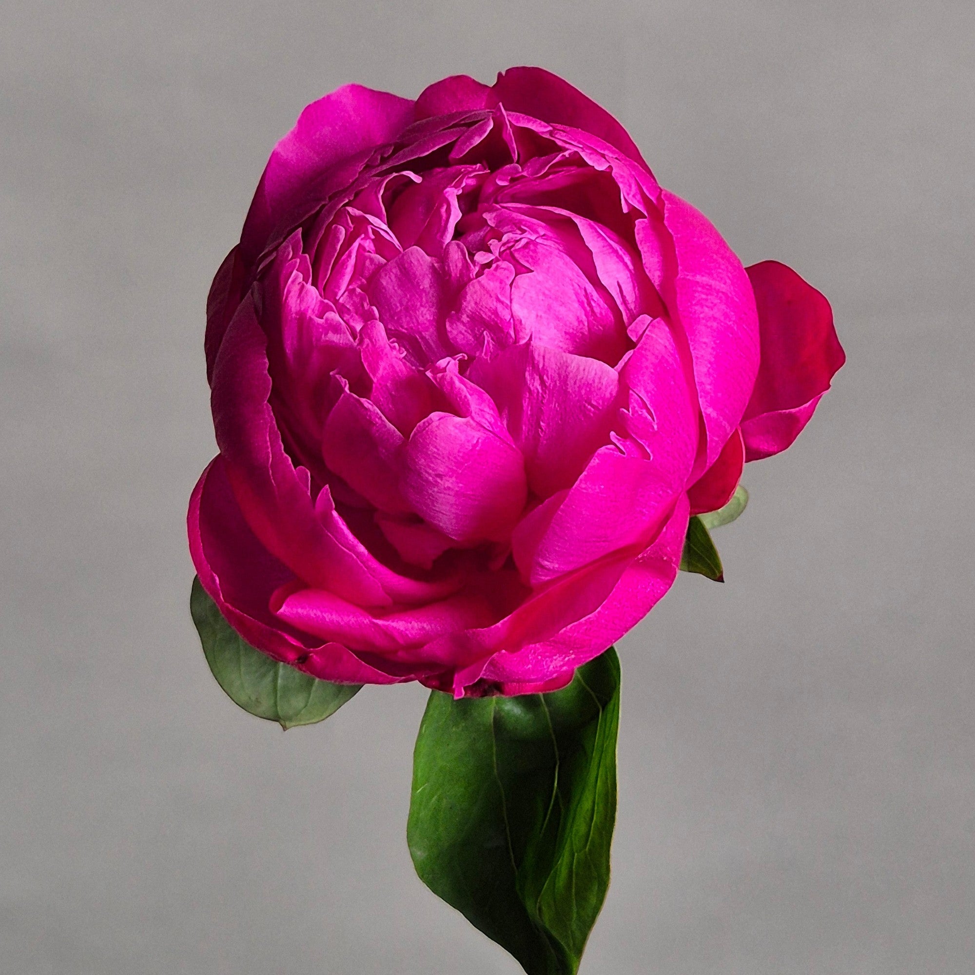 Acest buchet reuneste 19 fire de bujori intr-un degrade cromatic superb: de la albul imaculat si rozul delicat, pana la visiniul (fuchsia) pasional. Textura catifelata a petalelor este pusa in valoare de frunzele de Eucalipt verde-cenusiu, care adauga o nota moderna si proaspata buchetului.