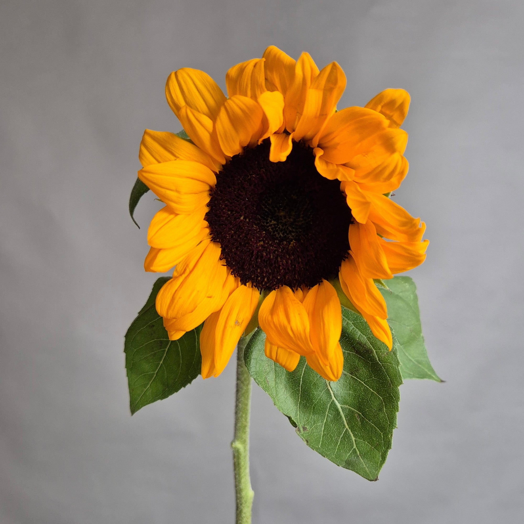 Piesele de rezistenta sunt firele mari de Floarea Soarelui, cu centrul lor contrastant si petalele aurii, simbol al adoratiei si loialitatii. Acestea sunt completate de trandafiri galbeni intensi si minirosa, care adauga rafinament aranjamentului.