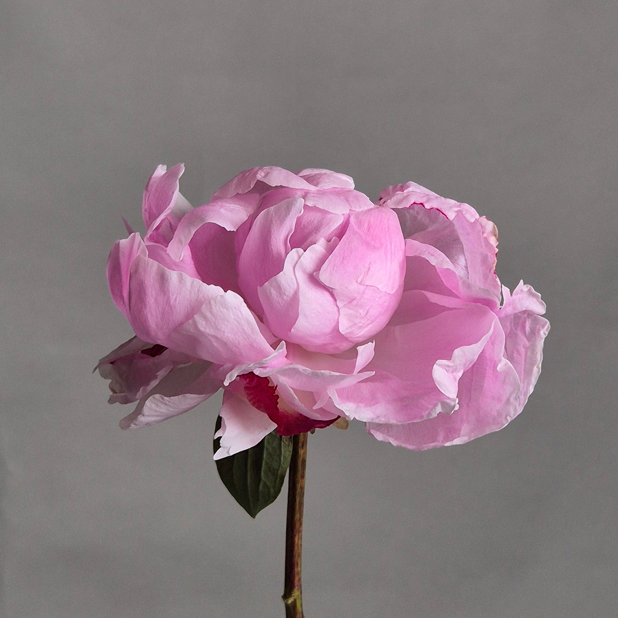 In interiorul suportului alb, inalt si elegant, prevazut cu manere din snur, se ascunde o explozie de culoare: 11 fire de bujori proaspeti. Am ales un mix cromatic irezistibil: alb pur pentru sinceritate, roz pudrat pentru tandrete si visiniu (fuchsia) pentru pasiune.